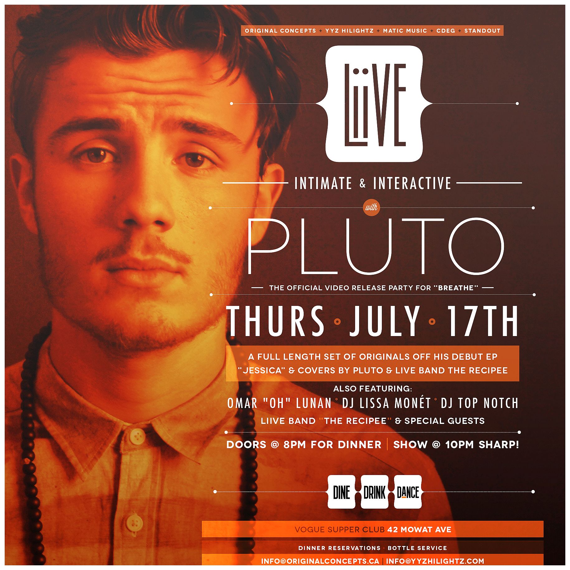UNPLUGGED – An Intimate Night w/ PLUTO at Vogue Supper Club + “Breathe” Music Video Release Party – Liive Thursdays Special Event July 17th 9pm